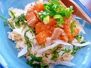 ごま油で美味しい サーモンの漬け丼 レシピ 作り方 By Megmako 楽天レシピ